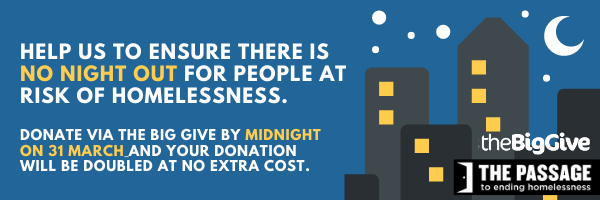 The Passage’s mission and work is developing a way to cope with the situation of the pandemic and more people becoming homeless. It is raising funds through the Big Give until Wed 31st March to support No Night Out, a new initiative to take newly homeless people off the street straight away. Further details of the work is at www.passage.org.uk.